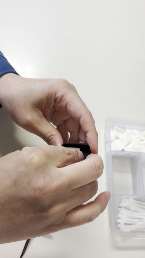 収納ケースから留め具シール(白・楕円形)を1枚取り出します。